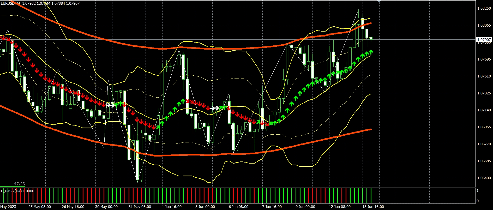 リミットは4時間足終値で+になったら臨機応変に決済します。