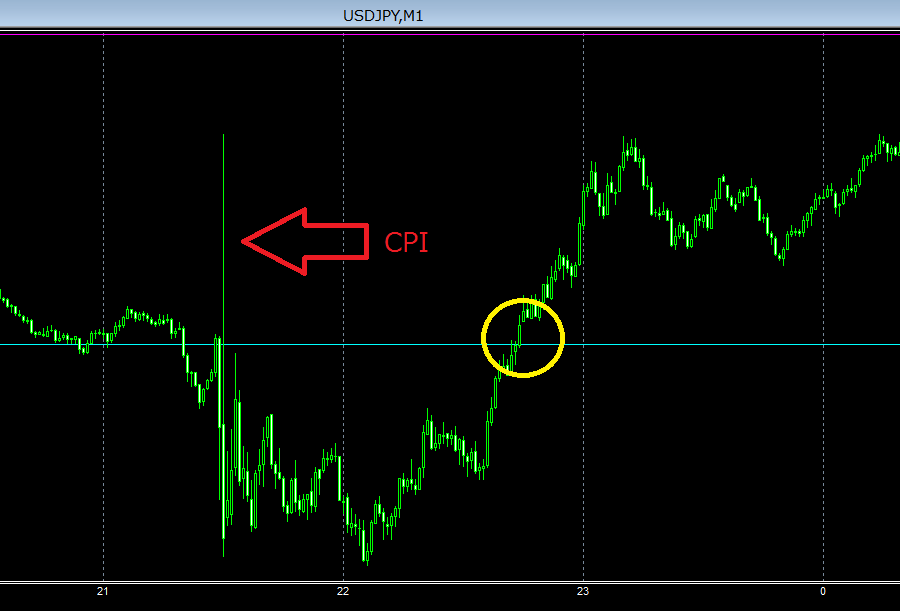 昨夜の米国指標CPIですが、以前の雇用統計並みの値動きでした。