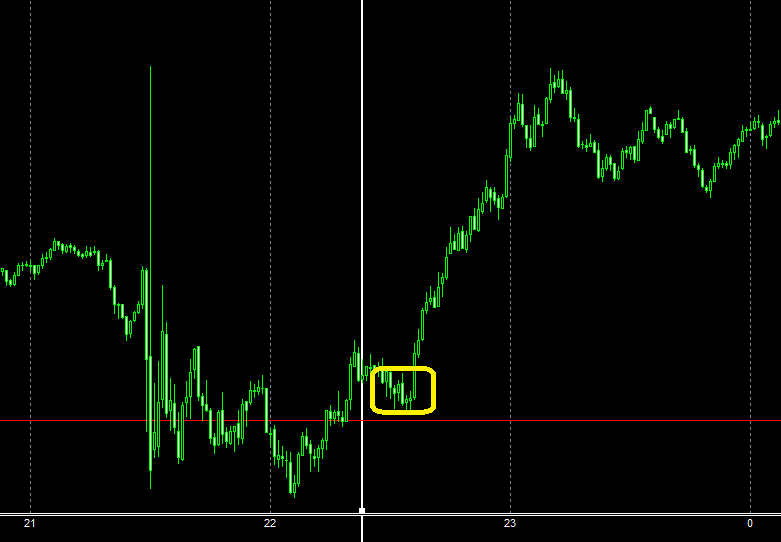 24時過ぎからの切り替わりの部分は、先程書いた「初動トレード」が出来る場面です。