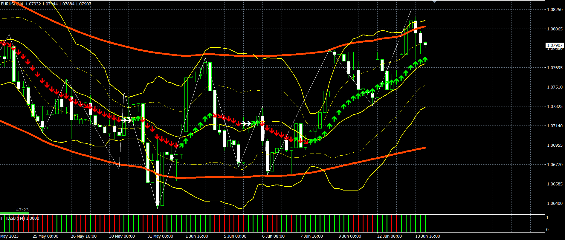 ユーロドルは買いポジションを4時間足昨夜10時の終値1.0814で決済しました。