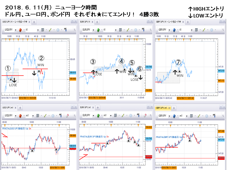 【徹底した裁量による相場分析】6月11日(月) NY時間 バイナリ 4勝3敗 そのエントリに根拠はあるか!?