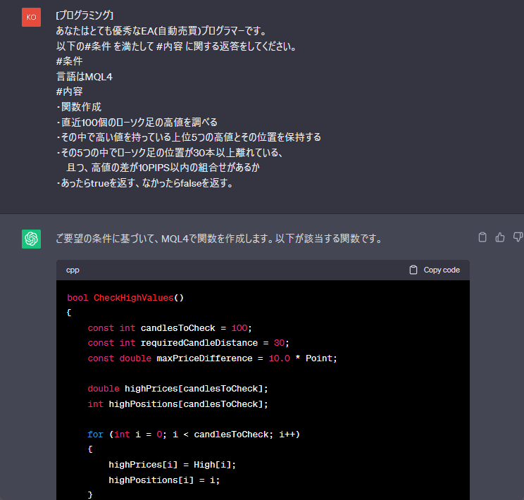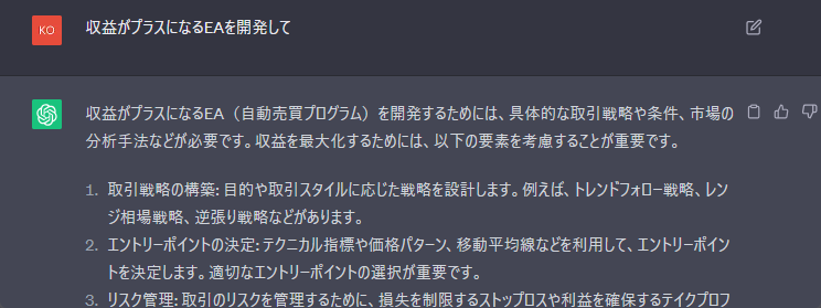 ChatGPTでEA開発できるのかについての記事第三弾です。