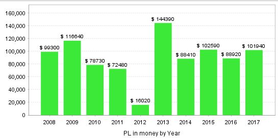 10年間のバックテストで年間を通してマイナスがありませんでした!