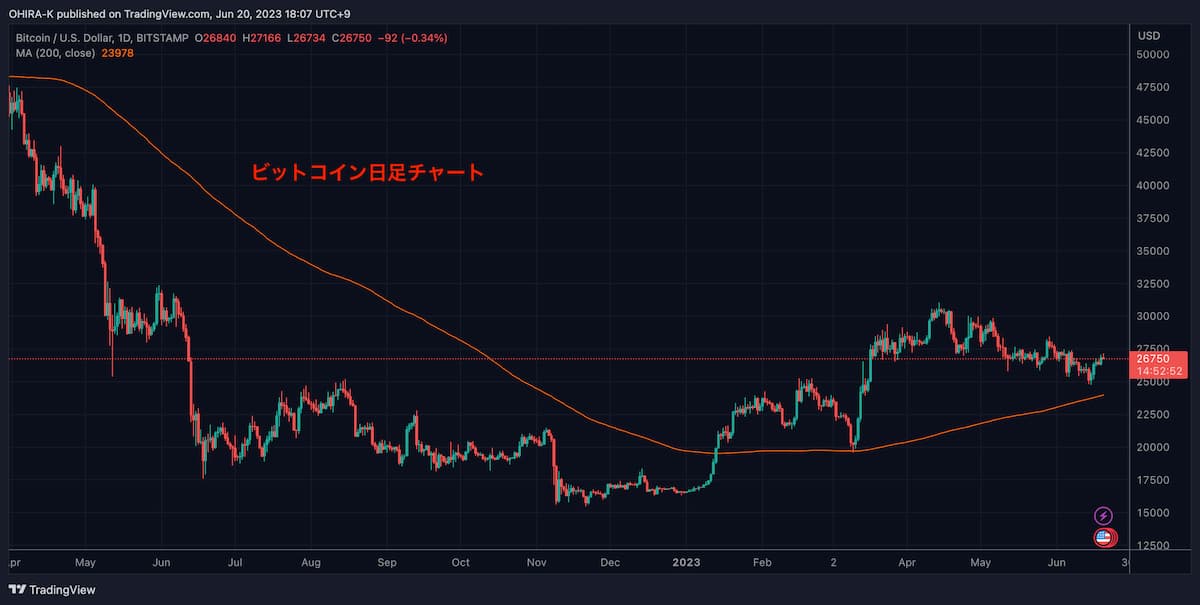 ビットコインは先週と比較し同水準の26000ドルの水準で推移をしています。
