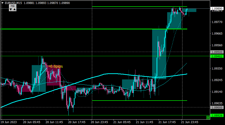 〇前日のトレード・USDJPY ドル円(15分足)昨日は先週安値141.50付近での値動きにとどまったためノートレード。・EURUSD ユーロドル(15分足)昨日は1.090付近でのプライスアクション