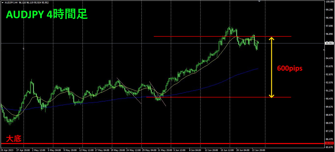 「AUDJPYを大底で買う」というトレード戦略を立てています。