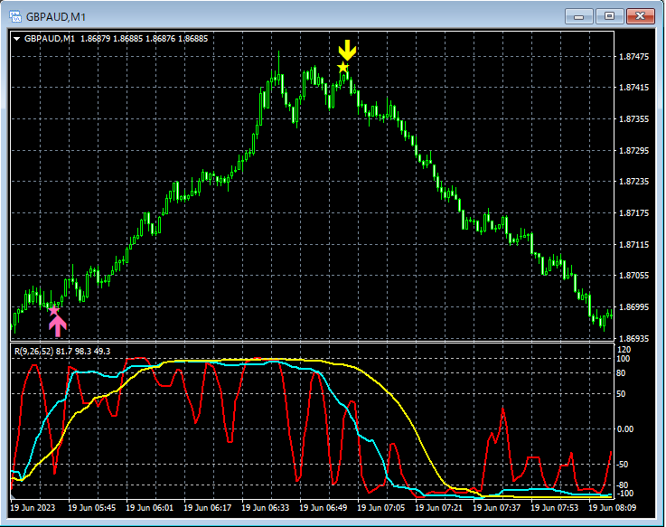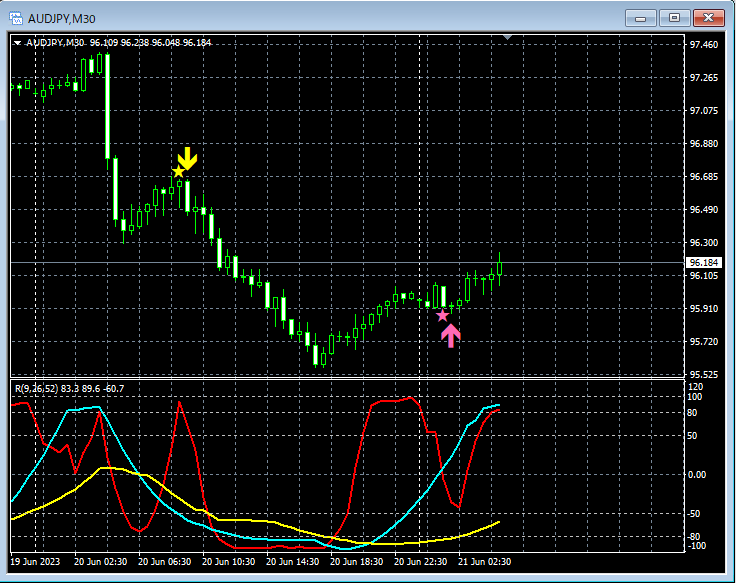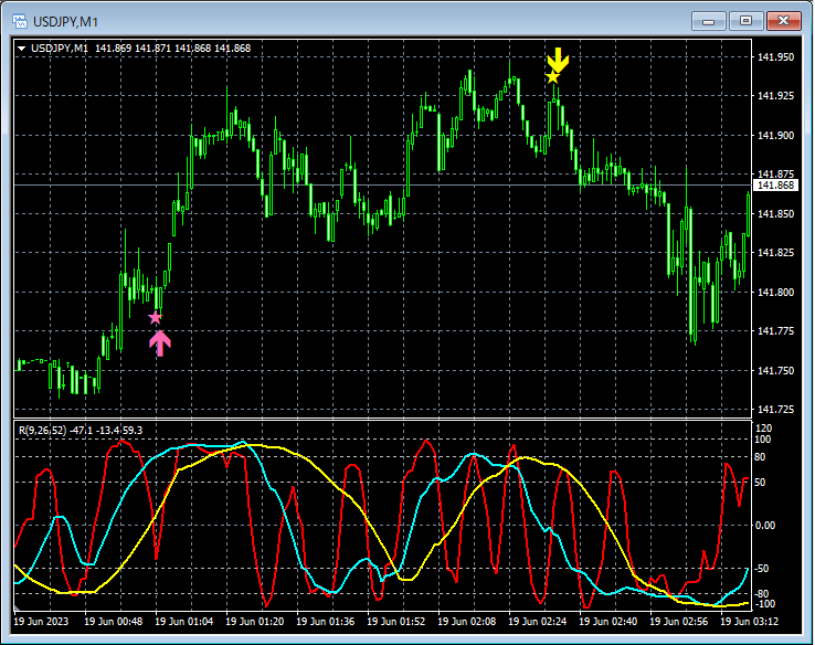 下記では、6月19日~6月23日において、mBDSR(RCI2本フィルターバージョン)のサインが上手く機能したと思われる例のうちの一部をピックアップして紹介します。