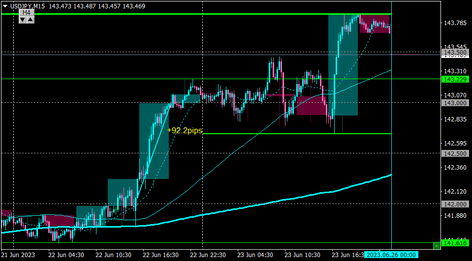 金曜は143.0付近で揉み合いを作ったが、下から買えなかったのでノートレード。