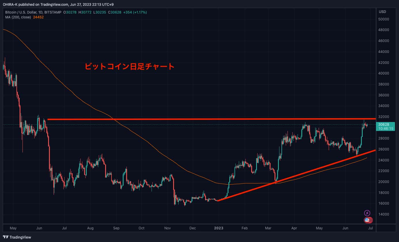 ビットコインは先週から大きく反発上昇し、4月の高値3万ドルの水準まで上昇しています。