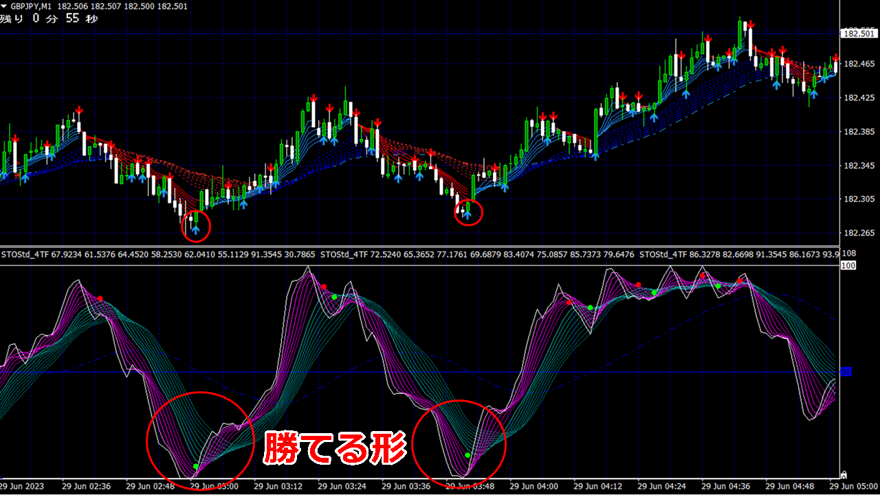 『1分足チャート』本日(6/29)の【勝てる形】を捉えてエントリー!