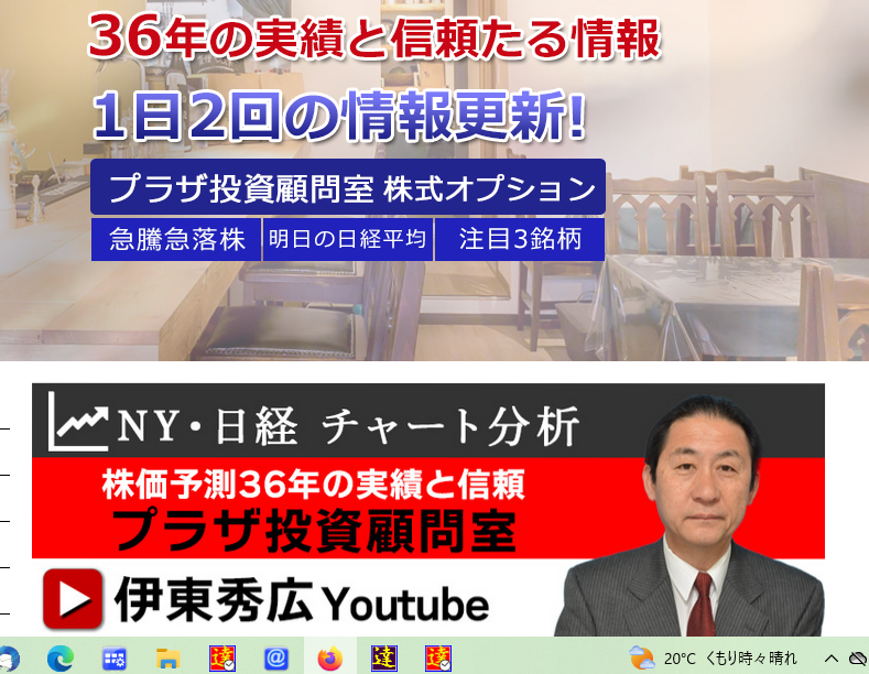 日経CNBCのマーケット解説、トレーダーのみならず、多くの証券アナリストの方々にもご利用いただいている株式会社プラザ投資顧問室です。