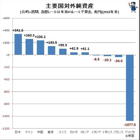 こちらは2018年のデータですが現在でも日本は対外純資産は世界一と言われています。