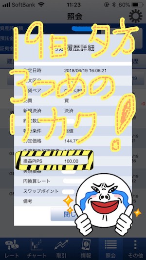 先週のハイライトは、19日(火)に3つの売りポジションがまとめて利益確定になったところ!