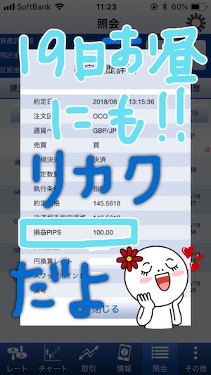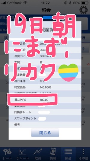 → 利食いは100pips、損切りは90pipsでOCOでセット