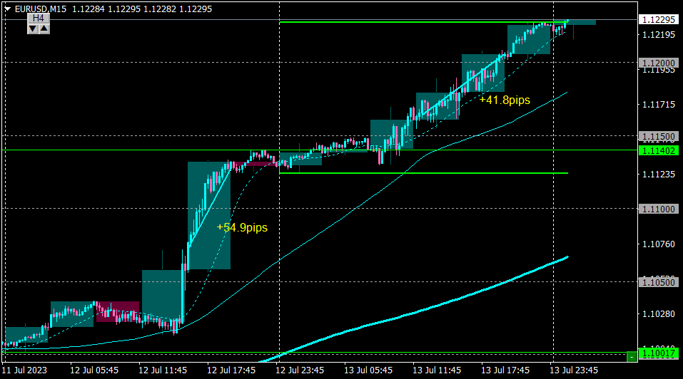 昨日はH4の足が昨日の高値をブレイクしたのを確認してロング。