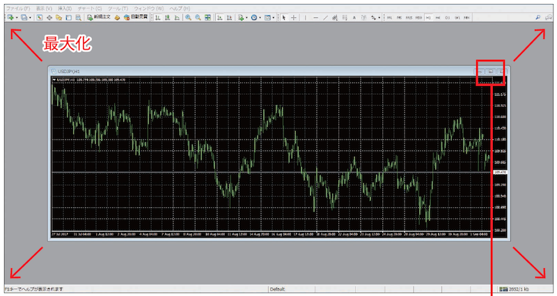 ウインドウの最大化「□」ボタンを押すと、チャートが最大表示に