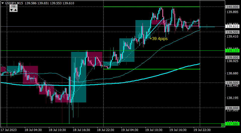 前日高値をH4の足でブレイク確定した後にロング。+39pips