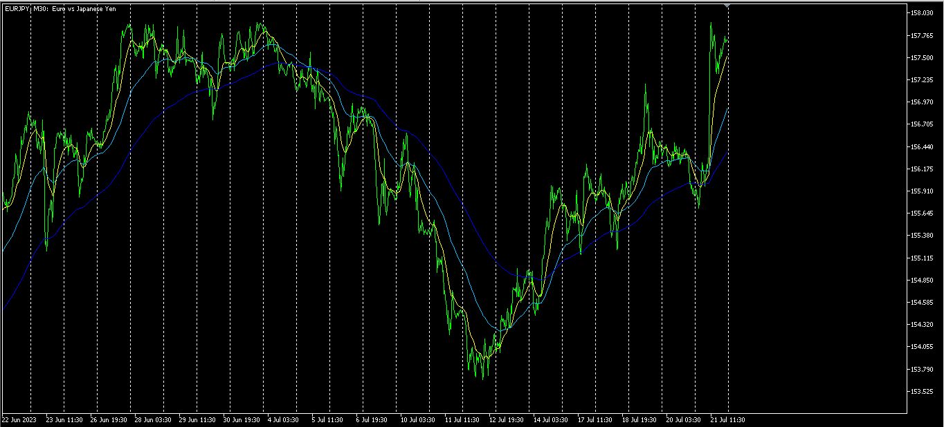 全体の流れを見るため、30分足チャートで直近約3週間分を描いています。