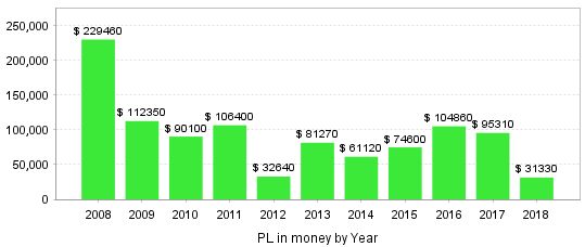 年間を通しての損益を見ると、2008年と2012年が極端ですが、