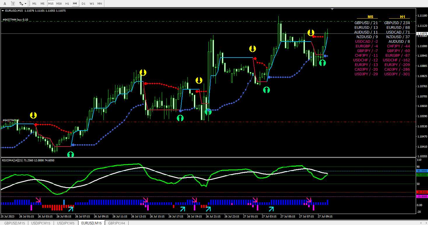 このインジケーター2つの特徴は、初心者の方でも分かりやすく大雑把ではありますが、キチンとそれらを踏まえて判断すれば、確実に大きく取れるトレンドが発生している通貨ペアを選ぶことが出来るのが特徴です。