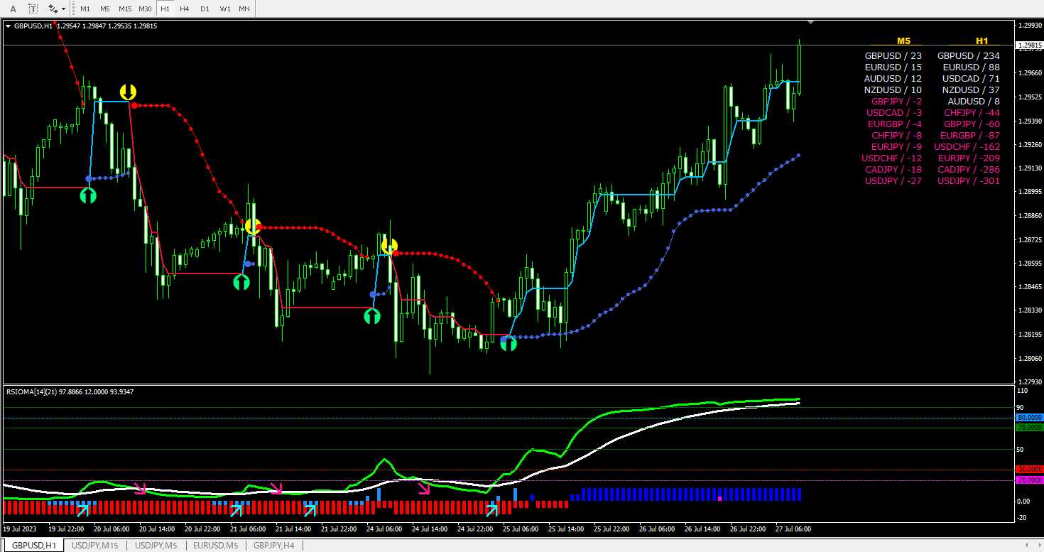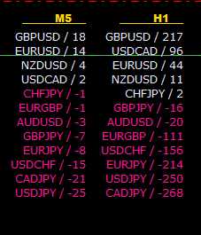 M5、H1ともに通貨ペアの一番強いのは、” GBP/USD ”となっています。