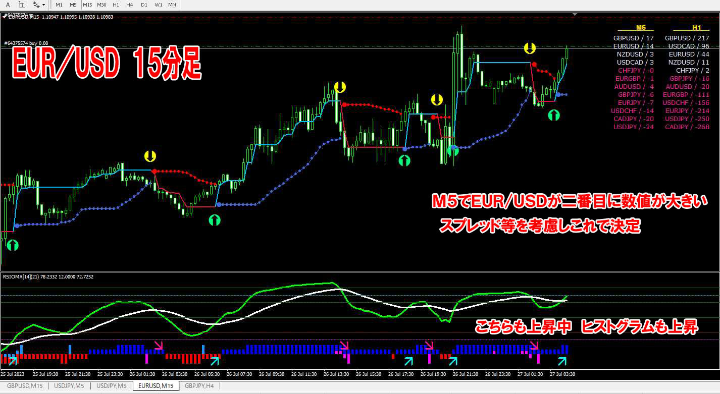 しかし、私が選んだのはM5で2番目の数値の大きい” EUR/USD ”です。