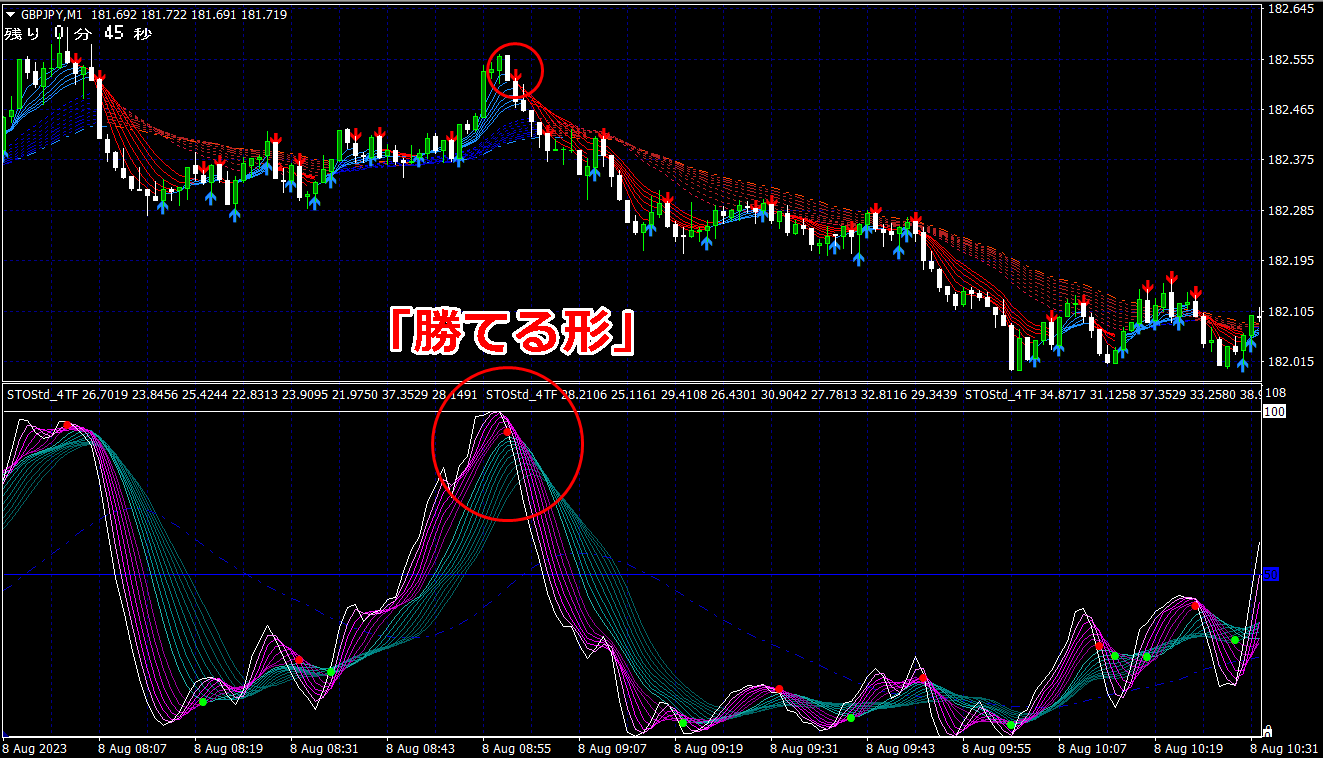 本日(8/8)の 『1分足チャート』 【勝てる形】だけ捉えてエントリー!