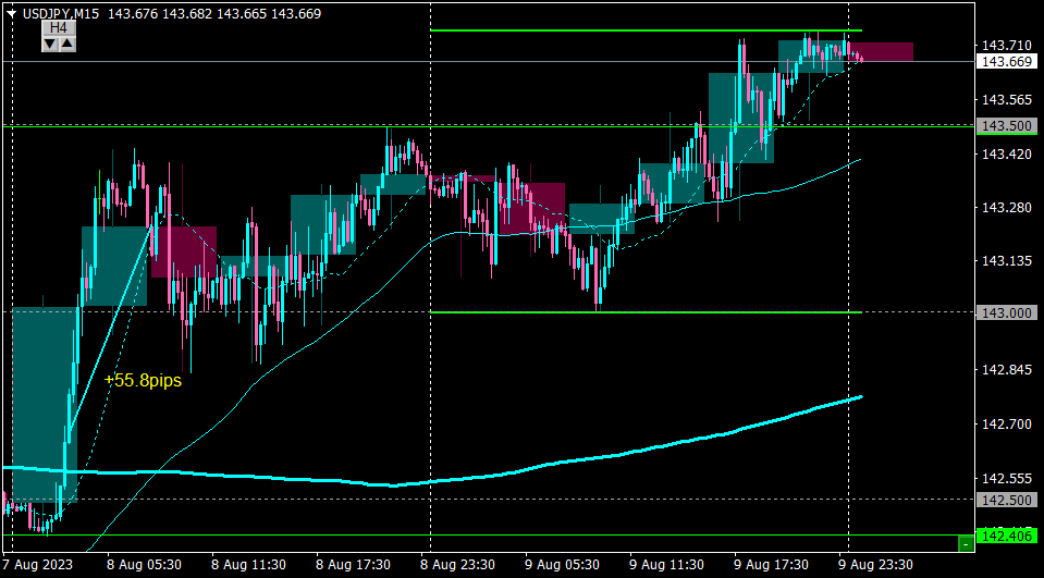 昨日は143.50での値動きを注視。Wトップにならずノートレード。