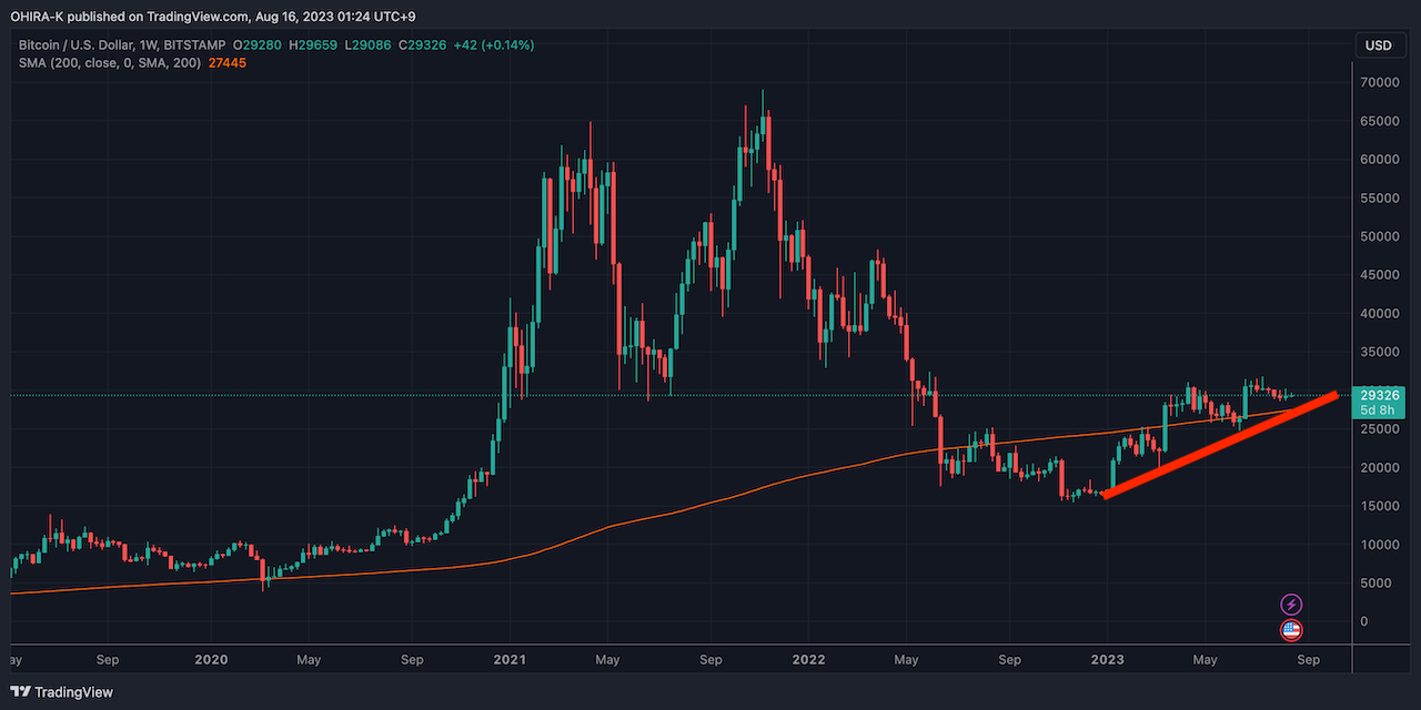 ビットコイン引き続き現在レンジ相場の下限(30000ドル弱)で推移をしている状況です。