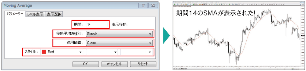 A15.「Moving Average」を選び、パラメーターを設定します