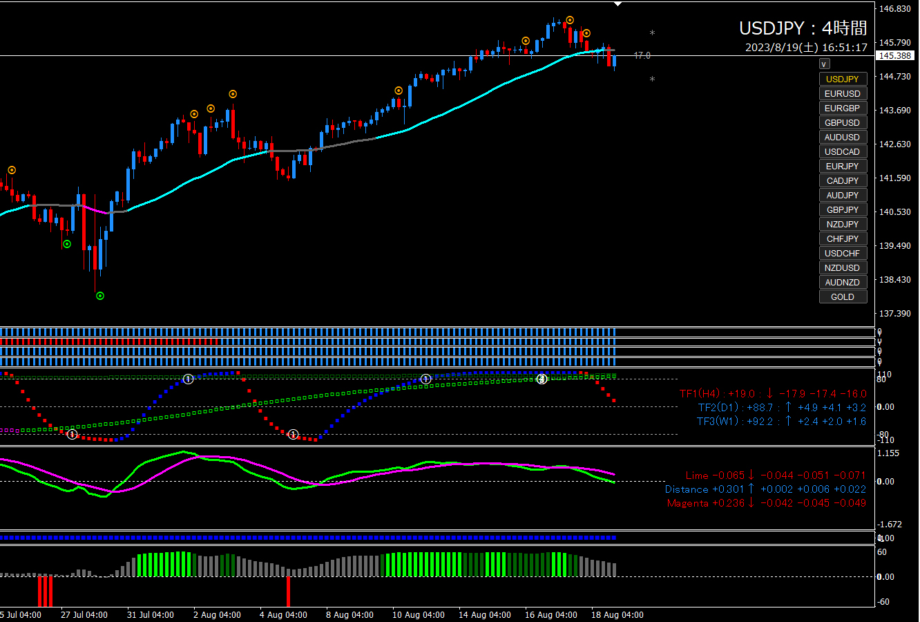 【2023年8月20日】天と地のインジケーターを使用したチャート考察