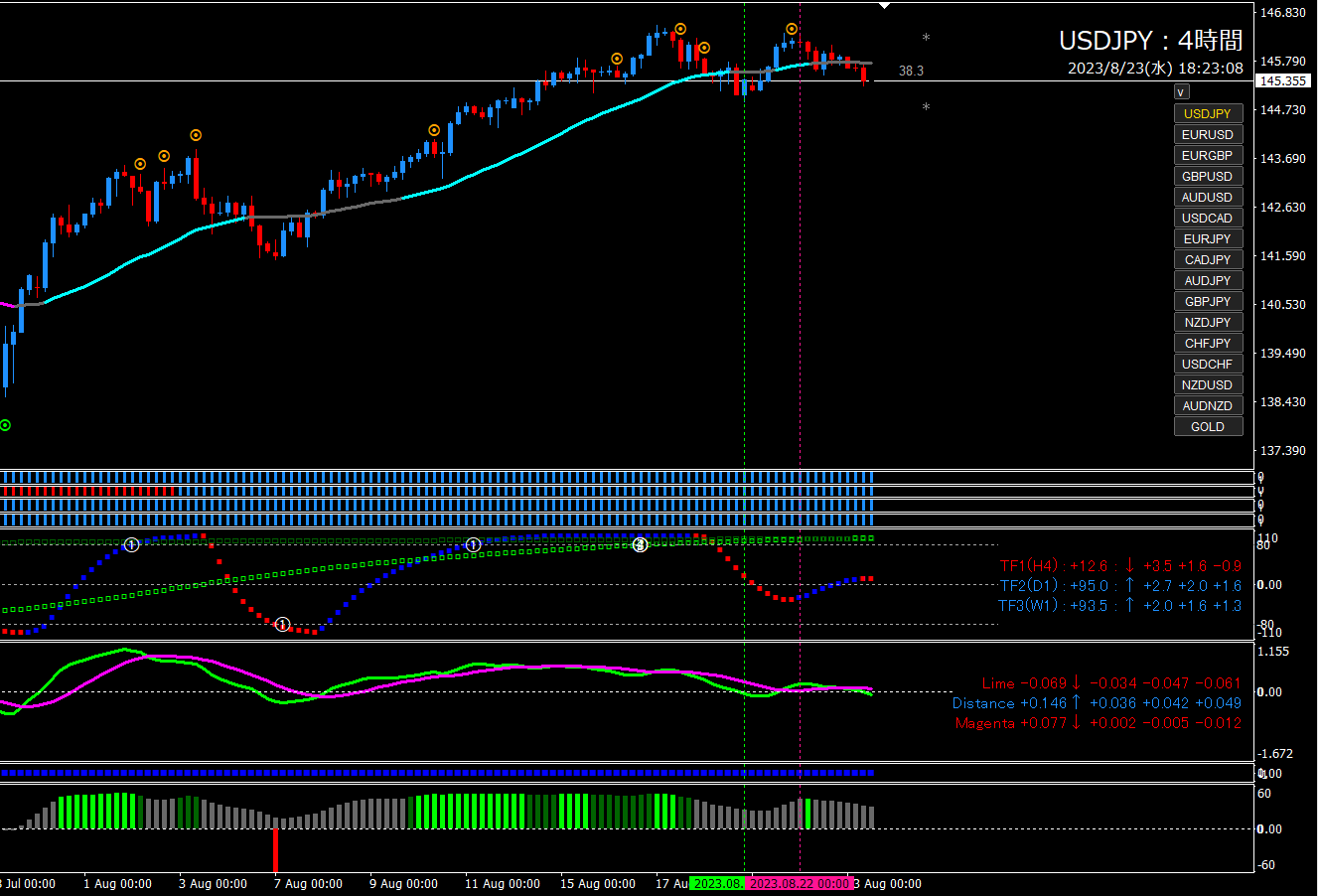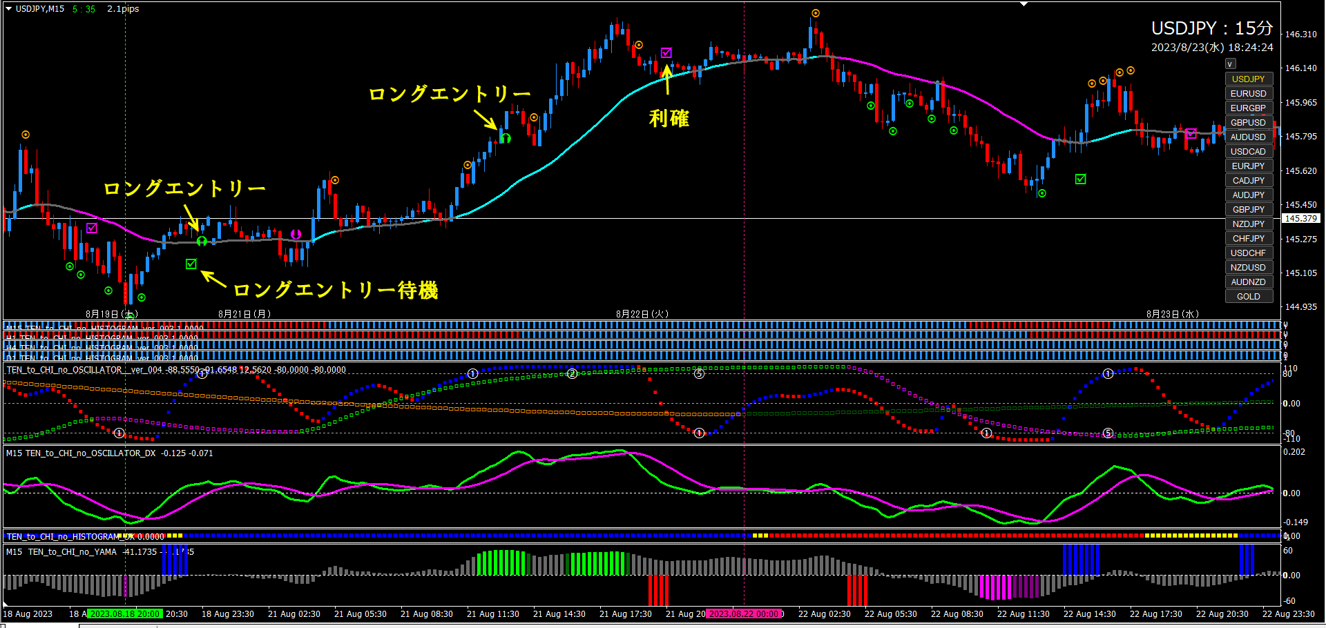 ドル円 15分足+4時間足 過去検証(2023年8月18日~8月23日現在)
