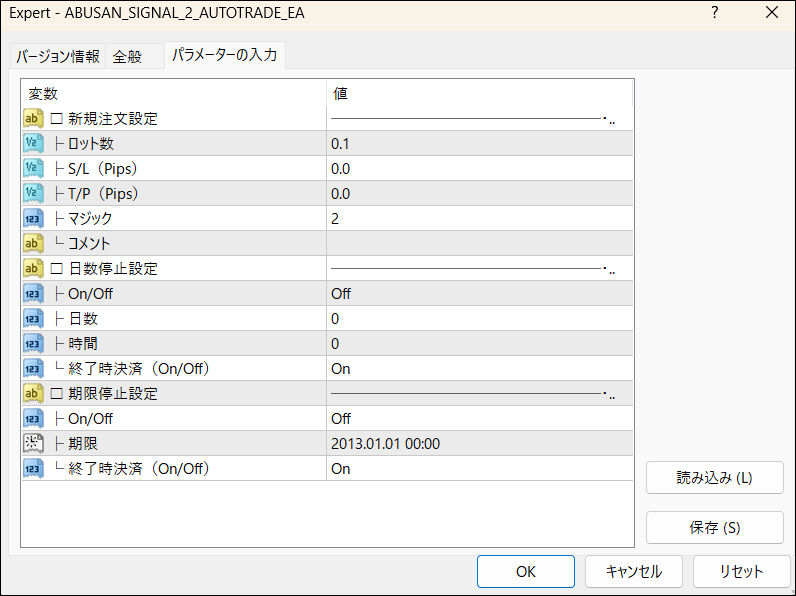 あぶさんシグナルにオマケとして配布中の「あぶさんシグナル2自動売買EA」をロングオンリー設定にする事で、チェックサイン(あぶさんシグナル2)のみで何度でもトレードを行ってくれます。時間設定も出来るので指標前に自動で停止させる事ももちろん可能です。