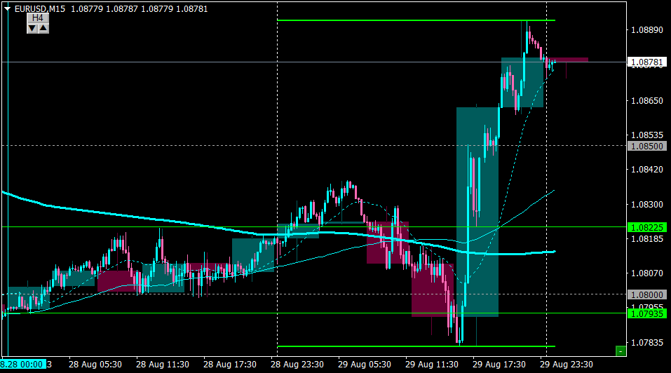 〇前日のトレード・USDJPY ドル円(15分足)昨日は先週安値141.50付近での値動きにとどまったためノートレード。・EURUSD ユーロドル(15分足)昨日は1.090付近でのプライスアクション