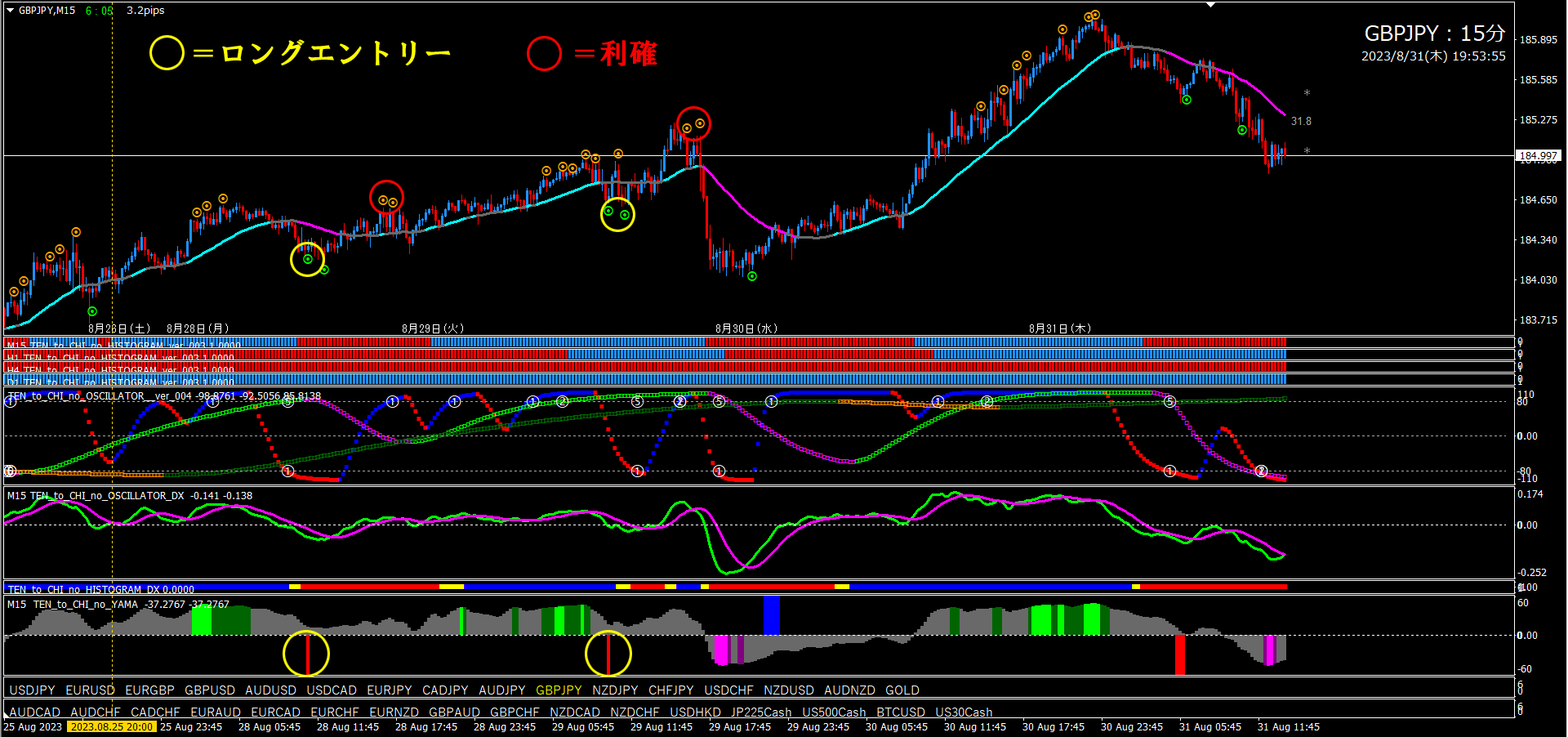 【2023年8月31日】天と地のインジケーターを使用した過去検証(ポン円)