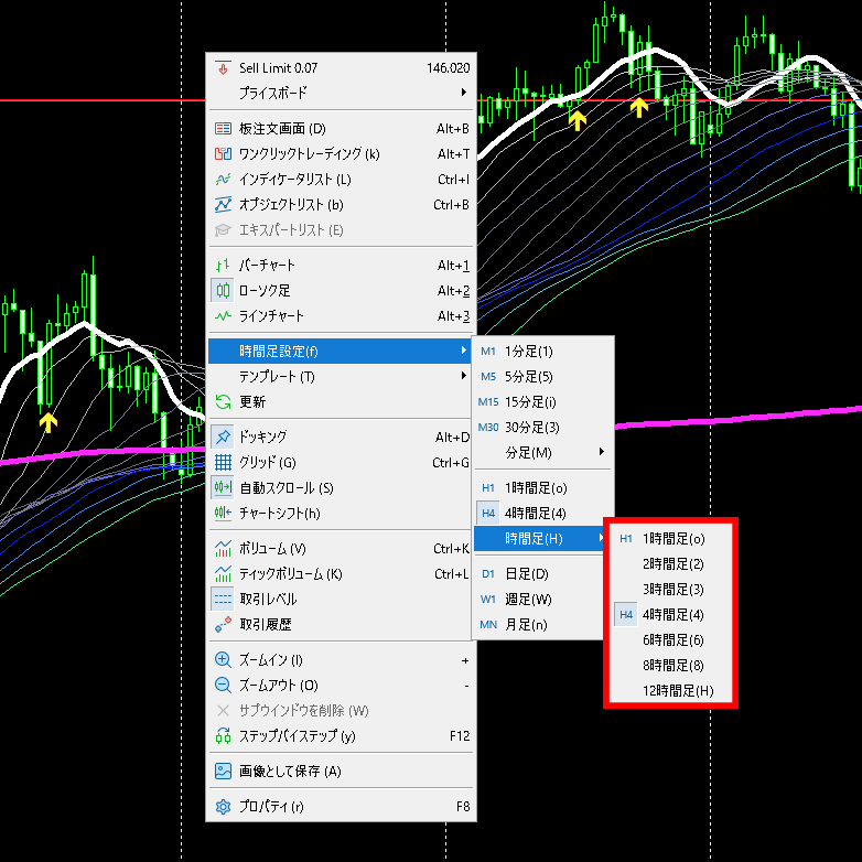 それ以外にもMT5には1時間足・2時間足・3時間足など選択肢が広がっています。
