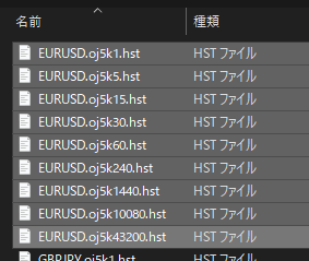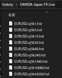 証券会社のヒストリカルフォルダーに変換された別の時間足のデータが作成されていることが確認できます。(確認しなくてもいいです。)