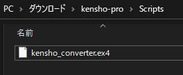 購入した商品フォルダーの中に[Scripts]フォルダーがあり、その中に「kensho_converter」というファイルが入っていることを確認してください。
