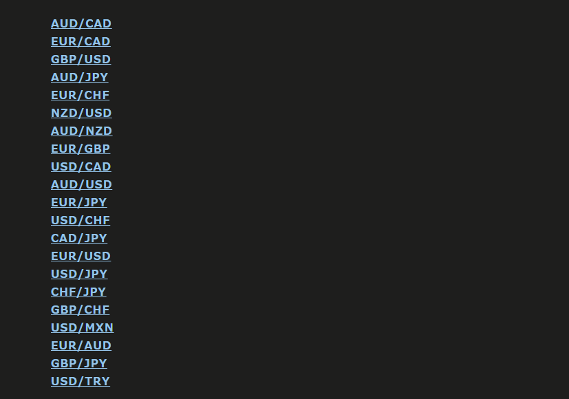 色々な通貨ペアがあるので、目的の通貨ペアをクリックしてダウンロードしてください。