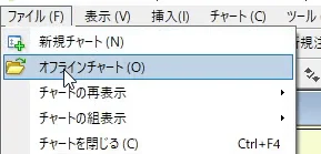 上部のメニューから[ファイル -> オフラインチャート]を選択。
