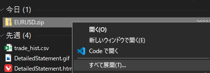 ダウンロードしたZIPファイルを「右クリック -> すべて展開 -> 展開」を選択して展開します。