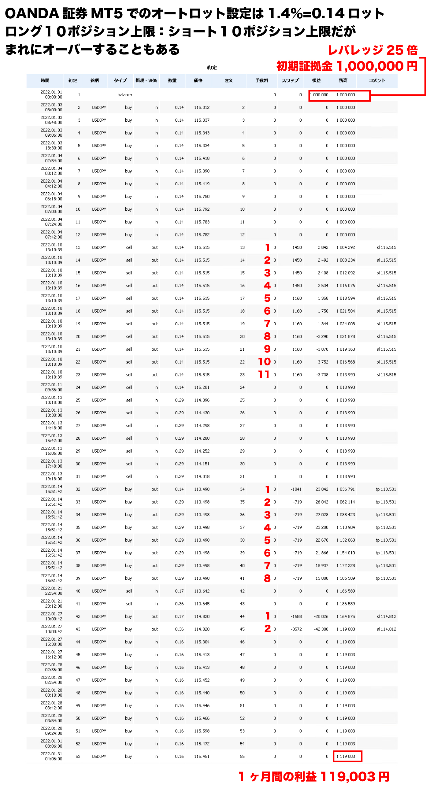 国内証券会社OANDA証券でのバックテスト結果についてのご報告