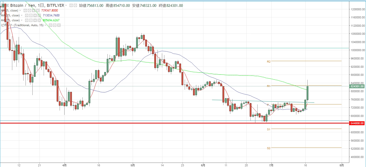 ネックラインを越えつつ、バンドウォークが始まれば、ダブルボトムブレイク後の目標値約65円を目指すといった展開になるでしょうか。そしてこの約65円というのは、週足の20SMAが走る水準。こちらを越えることで、リップラーの塩漬けしていた気持ちも晴れてくるとイイですね。