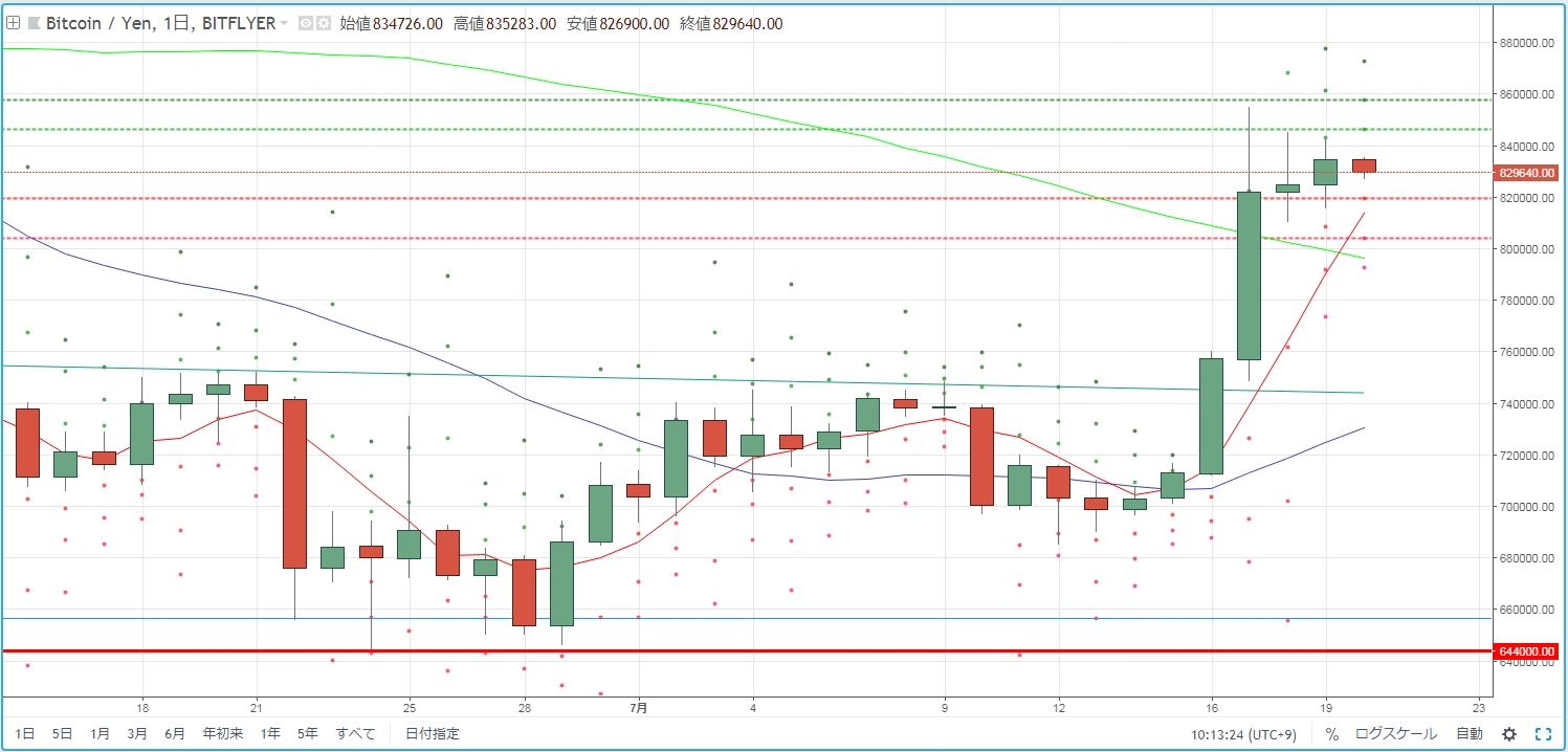 【XRPJPY】日足ベースで逆三山形成