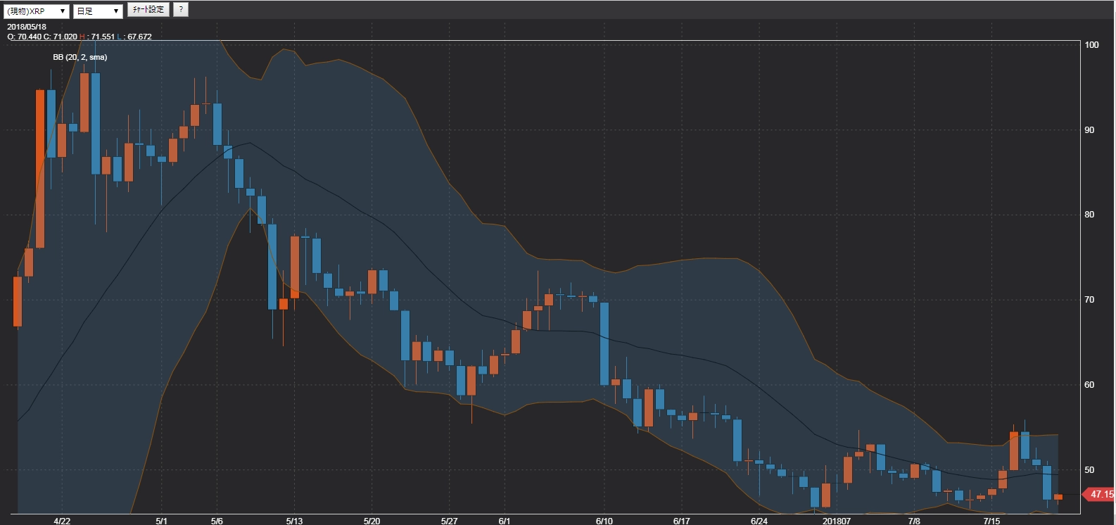 7月16日投稿の「【ETHJPY】三角もち合いから放れるか!?」では、日足に2018年1月13日高値等を結んだ上値抵抗線、2018年3月30日安値等を結んだ下値支持線にはさまれた三角もち合いを示し、そこから上昇できるかどうかが関心事であると述べました。