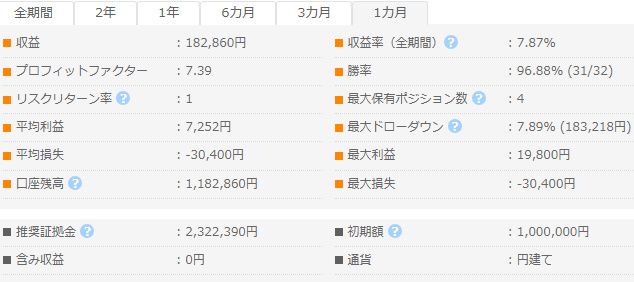 安全性のある勝利96.88% (31/32)のEAあります。