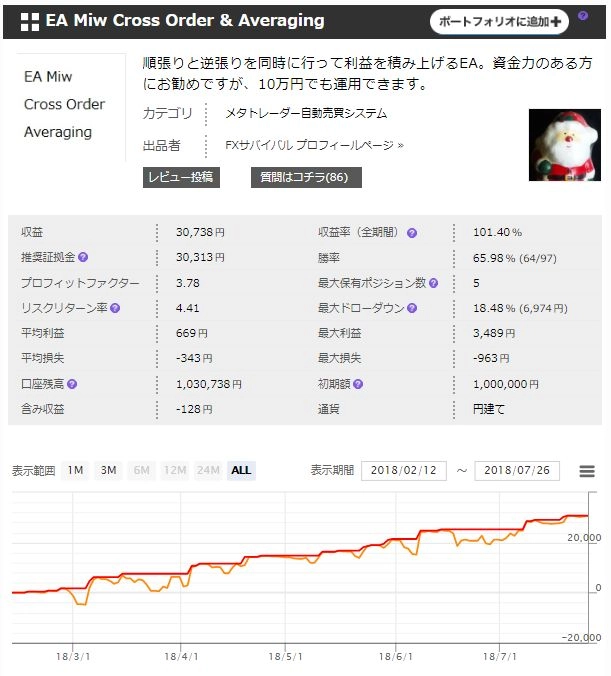 EURUSDやUSDJPYのEAが不調な時に良いポートフォリオになります。