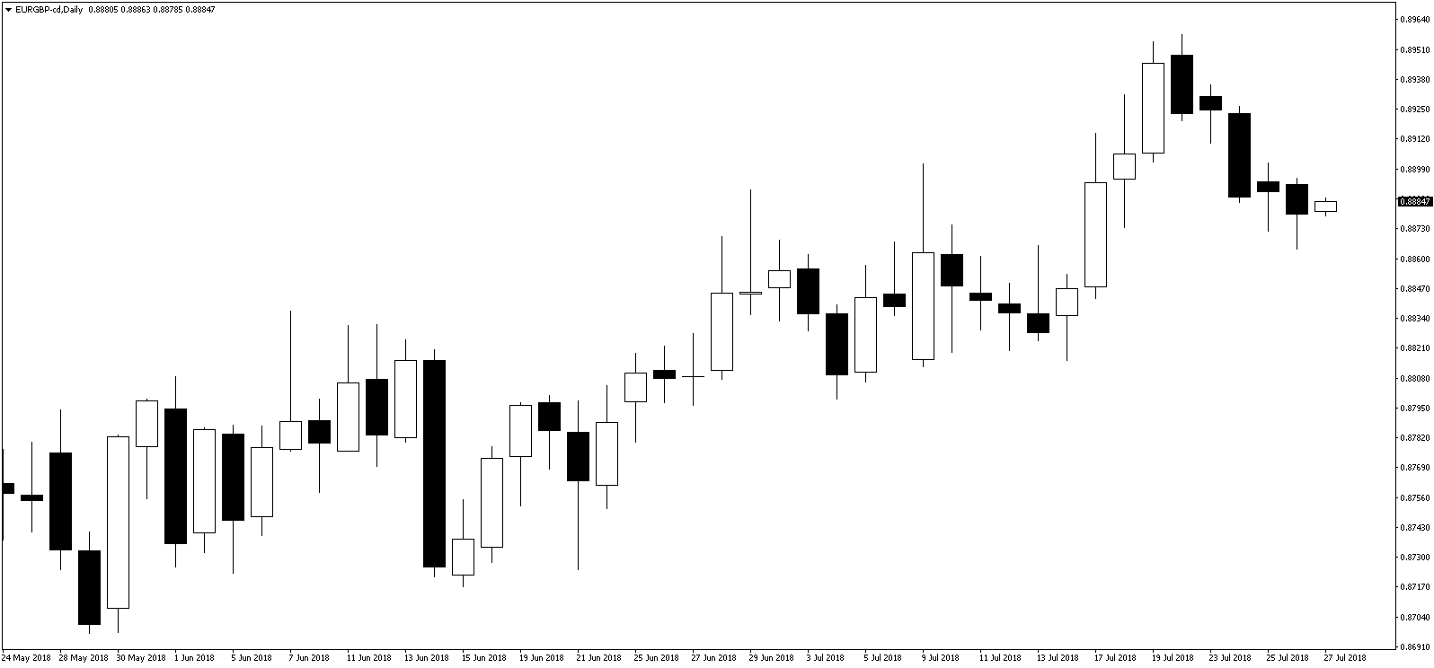 日足では昨日までに陰線が5本続いているユーロポンド。このまま下げるのか、あるいは上昇に転じるのでしょうか?(編集部)