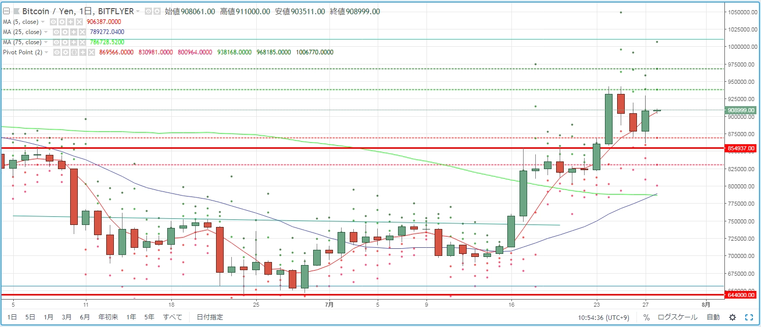 画像は2018年7月28日のキャプチャ。26日が全面安となったため心配された方も多かったと思いますが、27日に持ち直した格好…といった相場環境でした。