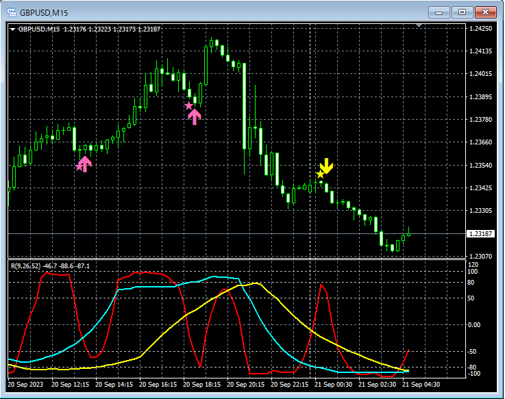 下記では、9月18日~9月22日において、mBDSR(RCI2本フィルターバージョン)のサインが上手く機能したと思われる例のうちの一部をピックアップして紹介します。